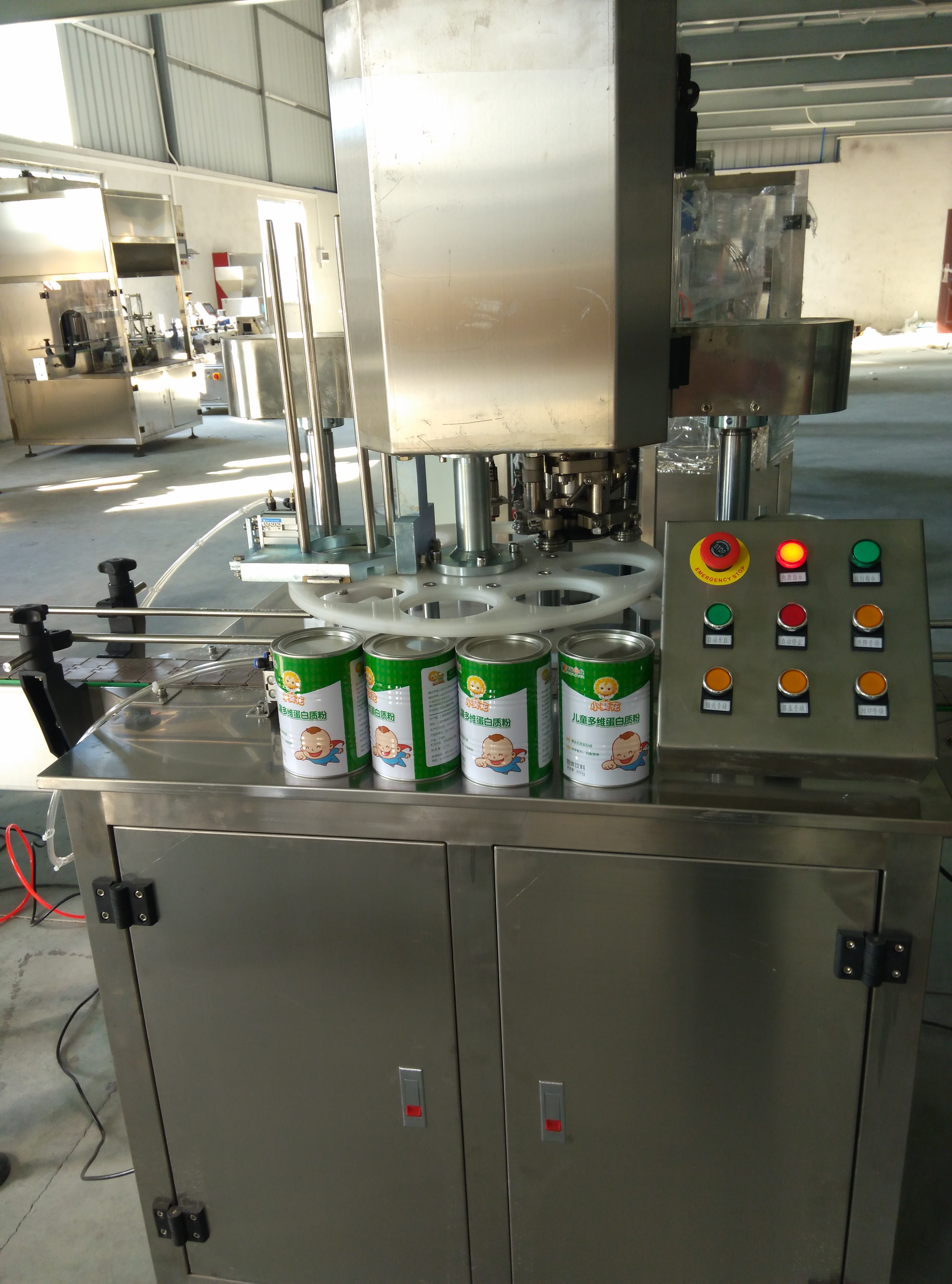 The machine is suitable for all kinds of circular specification cans packing, such as Tin cans, aluminum cans, plastic cans, paper cans. The machine has two pairs of (four) wheels roll seam sealing. Sealing the difference specification circular cans, just change the Indenter, turntable, under cover device. High production capacity, a wide range of applications, high degree of automation, easy to adjustment Suitable for canning production line equipment.