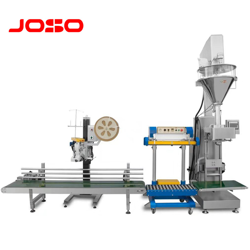 Filling→Sealing→Stitching→Bag Falling→Leveling→Weight detection→Metal Detection→Eliminating and Printing Packing System