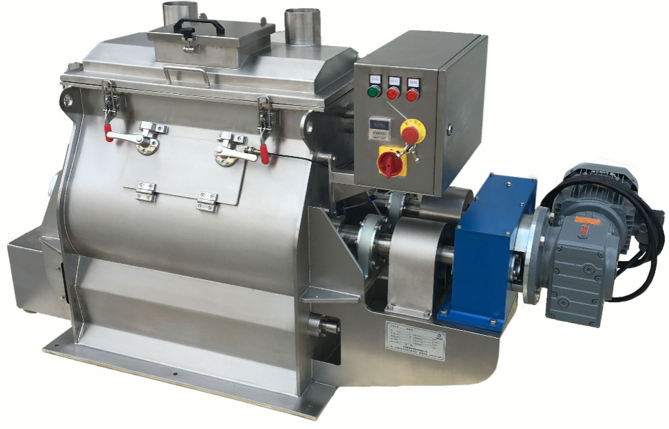 Double shaft paddle mixer, also known as gravity free mixer, is suitable for mixing powder and powder, particle and particle, particle and powder, and a small amount of additive liquid. It is widely used in food, chemical industry, dry powder mortar, pesticide, material and battery industries. It is a high-precision mixing equipment, which has wide adaptability to the mixture, and can be evenly mixed with materials with large difference in specific gravity, r atio and particle size, and has poor proportioning Materials with a ratio of 1:1000-10000 or higher can be mixed well. After adding crushing device, the machine can partly crush the granular material. The material can be stainless steel 316, 304, 201, etc